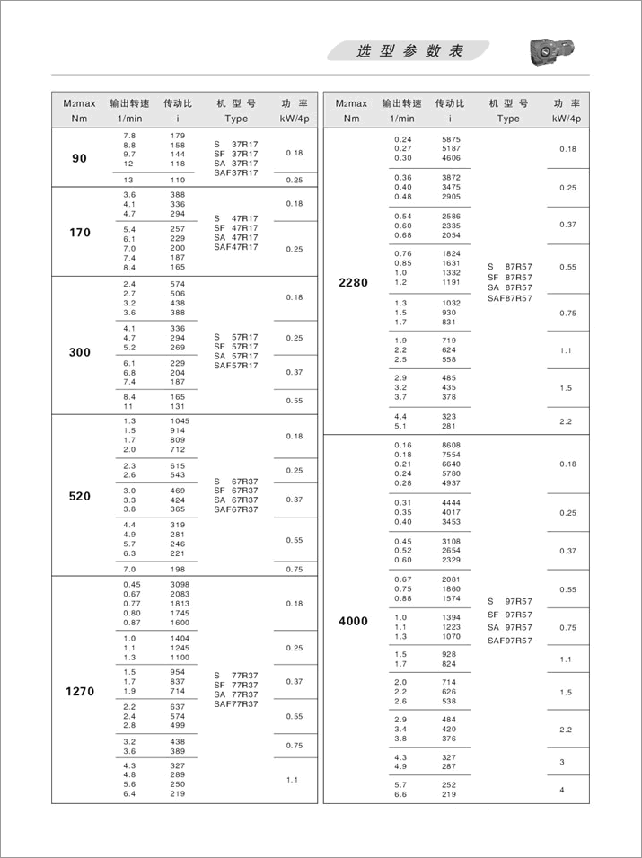 下一篇:S斜齒輪蝸桿減速機(jī)選型參數(shù)表15KW、18.5KW、22KW